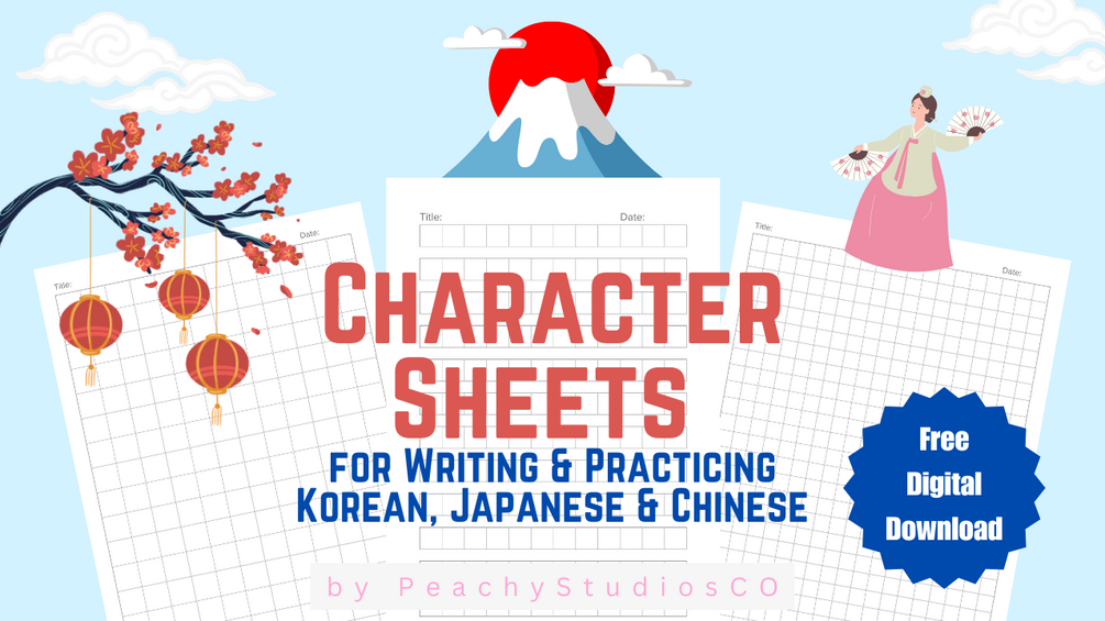 Character Writing and Practice Sheet PDF for Korean, Japanese, Chinese | Digital Download for Language Learning
